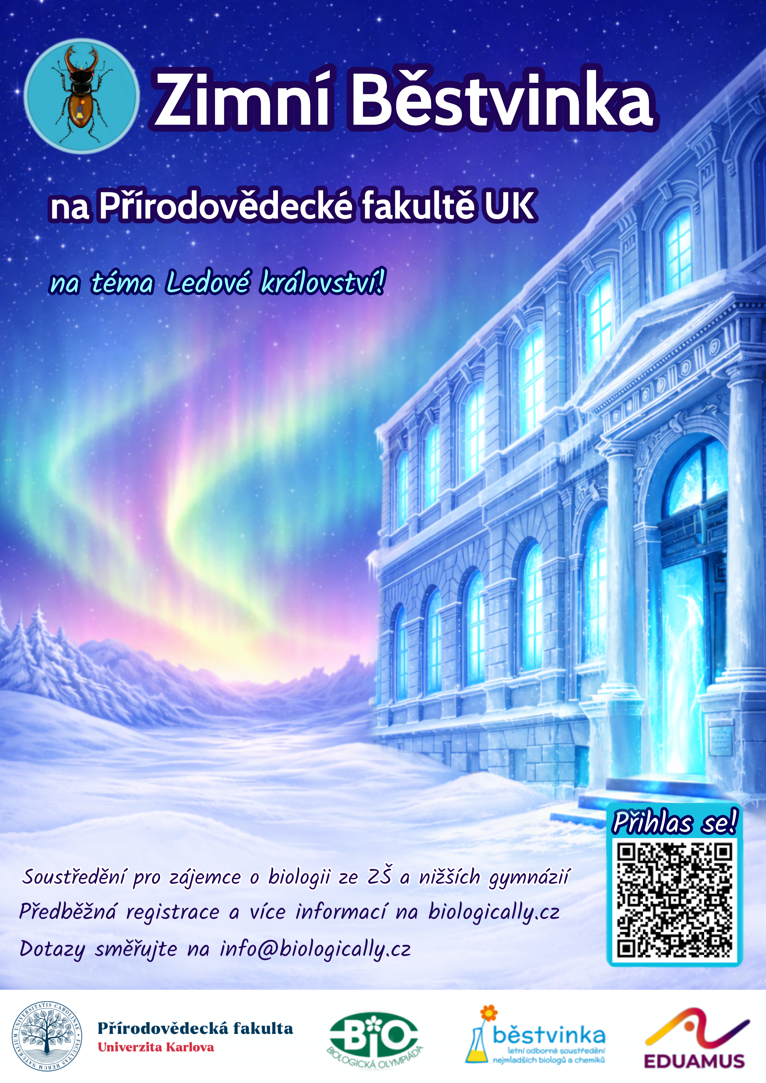 Máme pro vás skvělou zprávu - Zimní Běstvinka bude! Akci se nám nakonec podařilo zorganizovat a přípravy jsou v plném proudu. Přestože ještě očekáváme finální potvrzení od fakulty, rozhodli jsme se již nyní otevřít předběžnou registraci, abychom vše včas stihli.